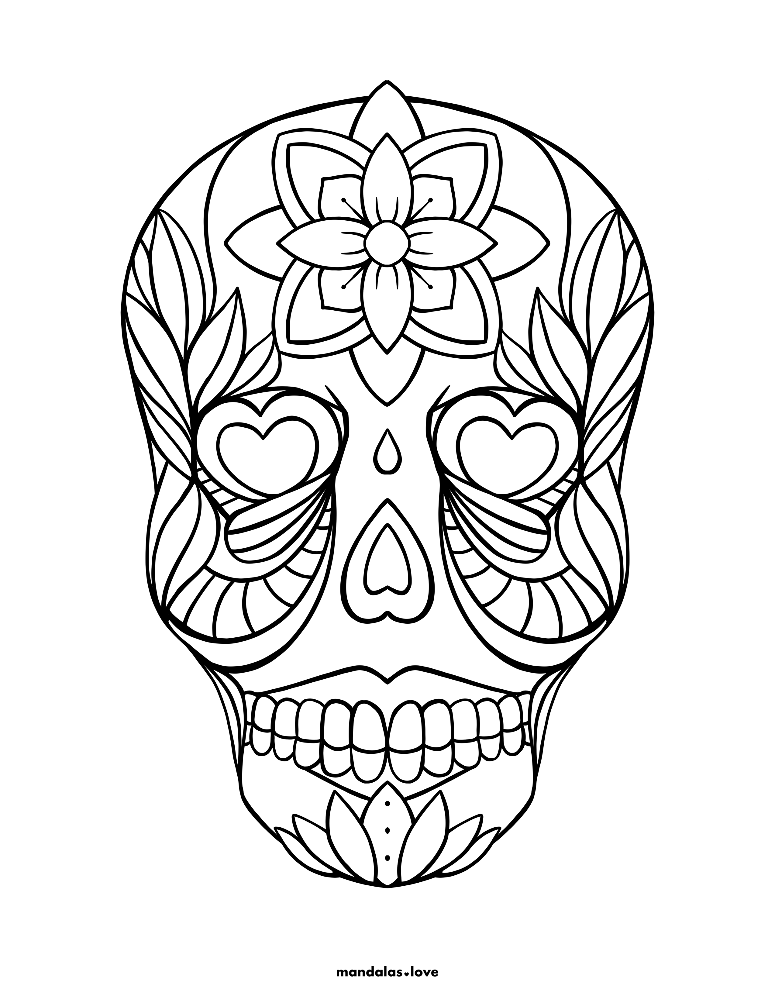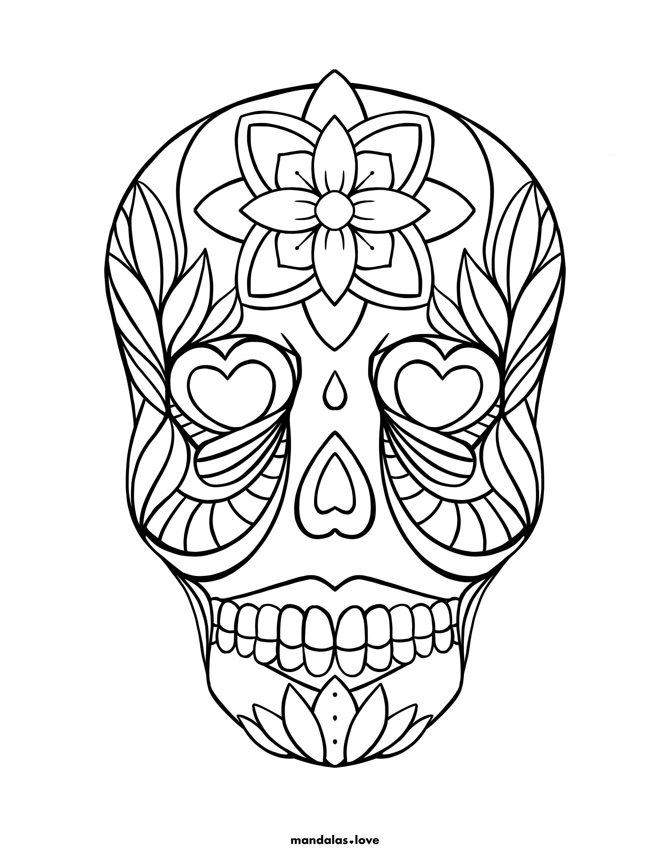 Heart-Eyed Mexican Sugar Skull Coloring Page
