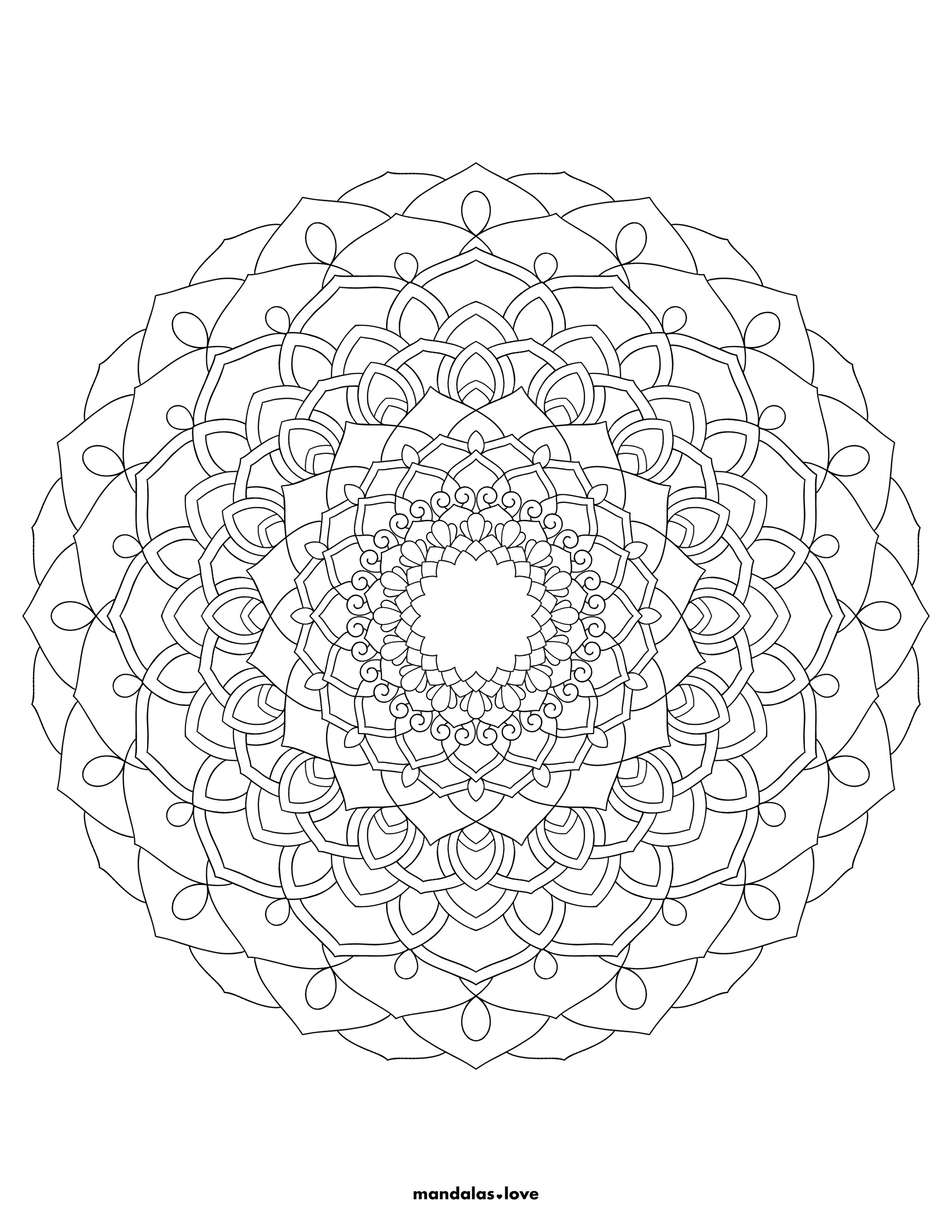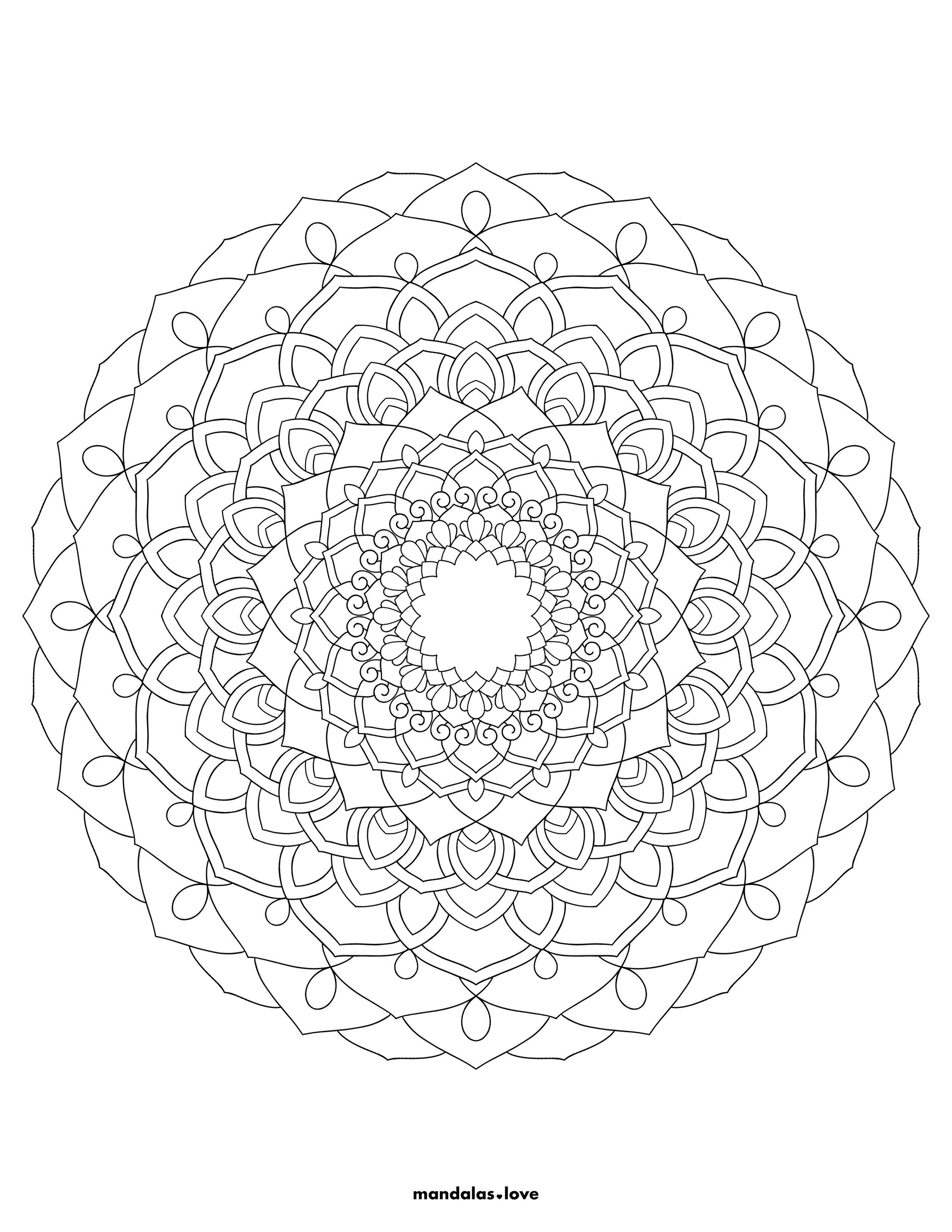 Multi-Layered Flower Design with Delicate Details This elegant mandala showcases the beauty of lotus petals in a sophisticated layered arrangement. Each ring of petals becomes progressively more detailed as it moves outward, creating a sense of depth and movement. The design incorporates small decorative elements and teardrop shapes that enhance the overall botanical theme. This mandala offers a perfect balance of simplicity and complexity for colorists of all skill levels.