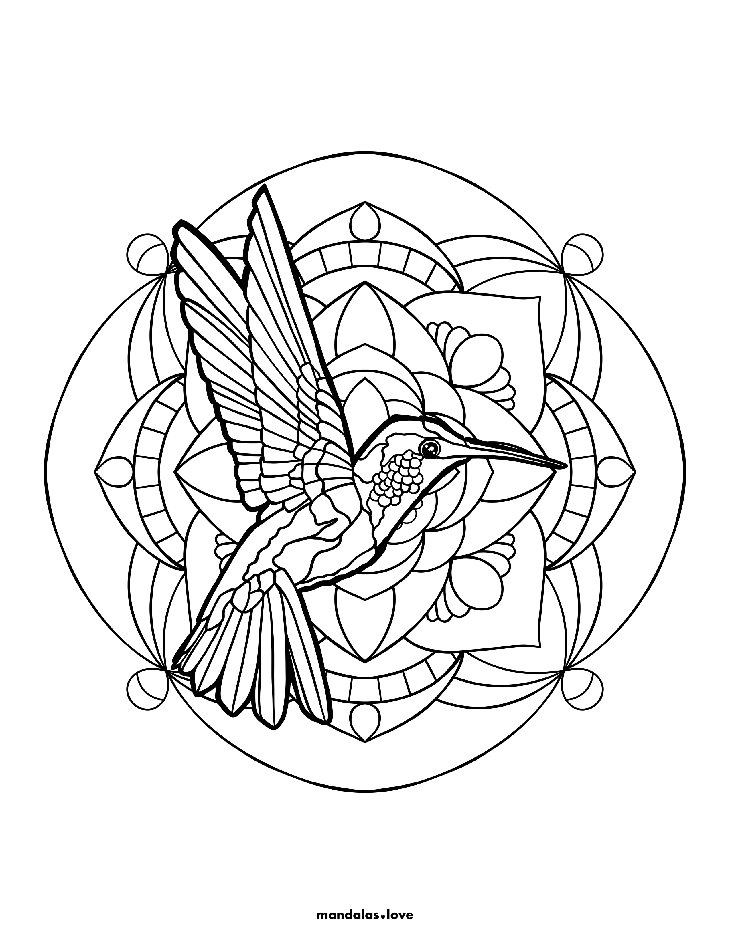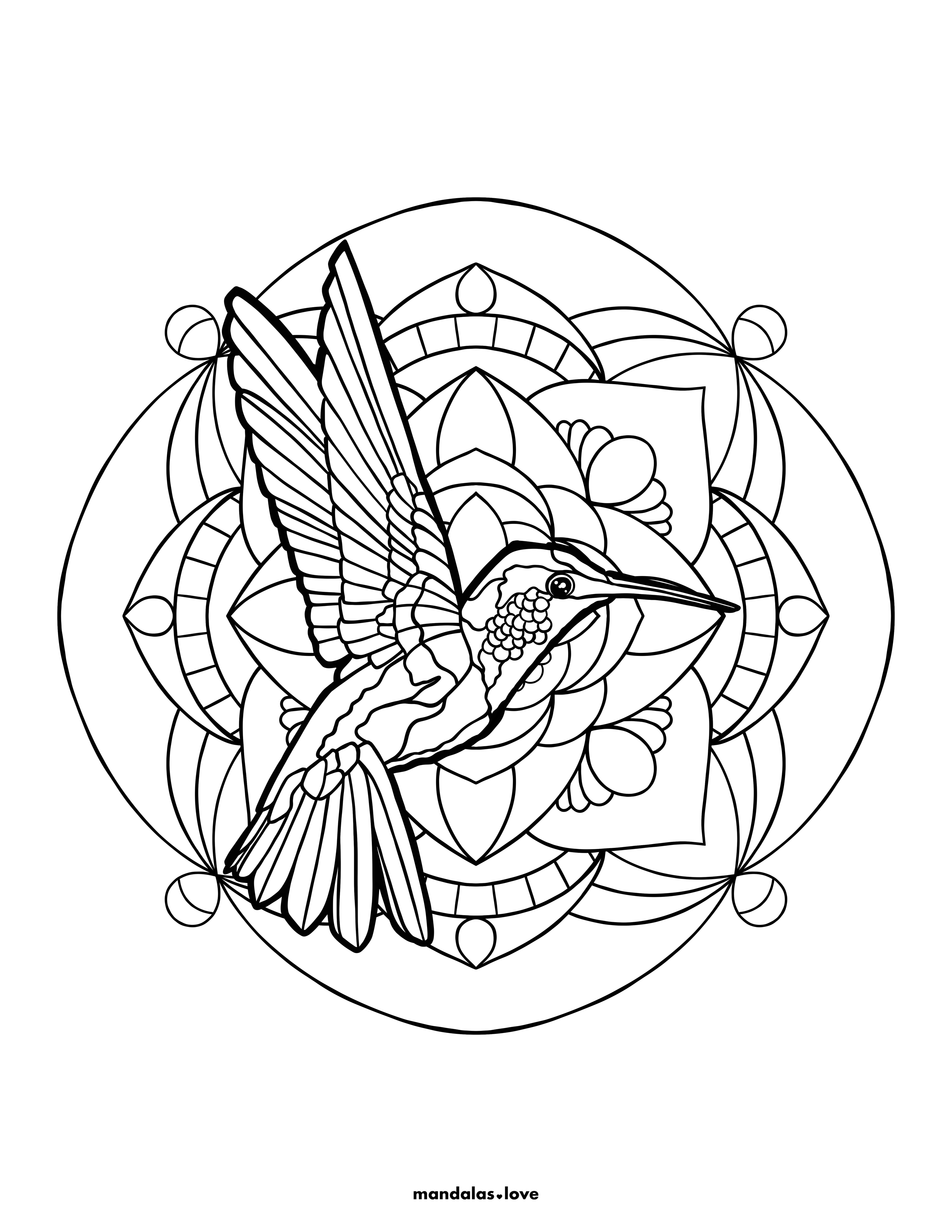 Discover the elegance of nature with this stunning hummingbird mandala coloring page. A graceful hummingbird takes center stage, surrounded by intricate circular patterns and floral motifs. Detailed Bird and Mandala Artwork This captivating design features a meticulously drawn hummingbird with detailed wing feathers and a textured throat patch. The bird hovers within a symmetrical mandala frame adorned with lotus-inspired petals, geometric arcs, and decorative circles. The combination of natural and sacred geometry creates a harmonious composition perfect for mindful coloring. • Intricately detailed hummingbird with feathered wings • Symmetrical mandala background with floral elements • Multiple layered circular patterns for depth • Zentangle-style textures throughout the bird • Balanced composition ideal for framing • Perfect for intermediate to advanced colorists