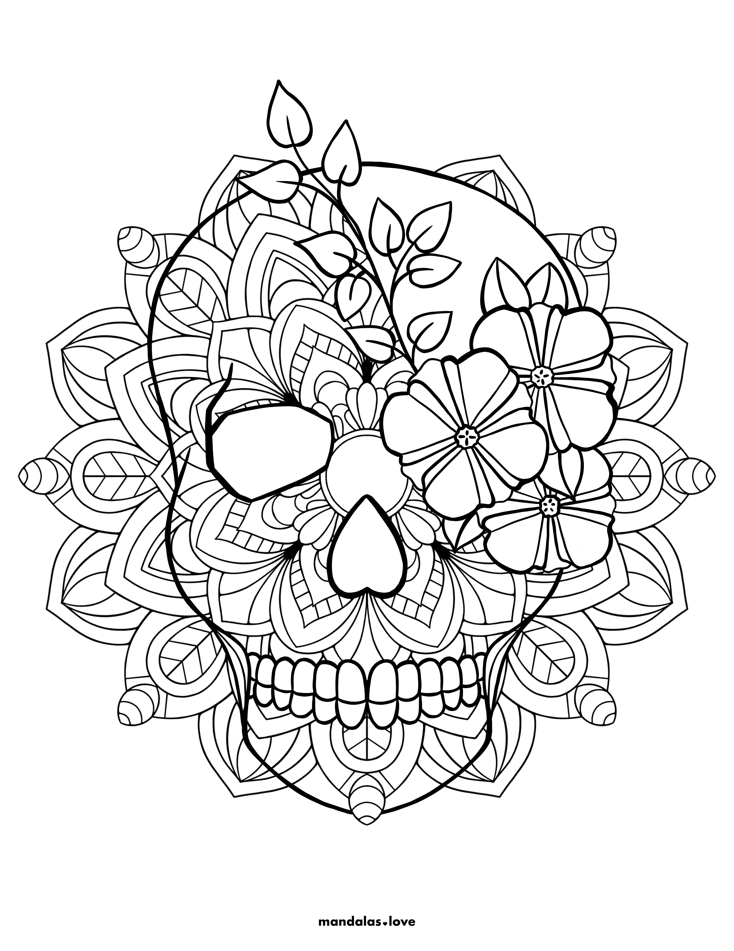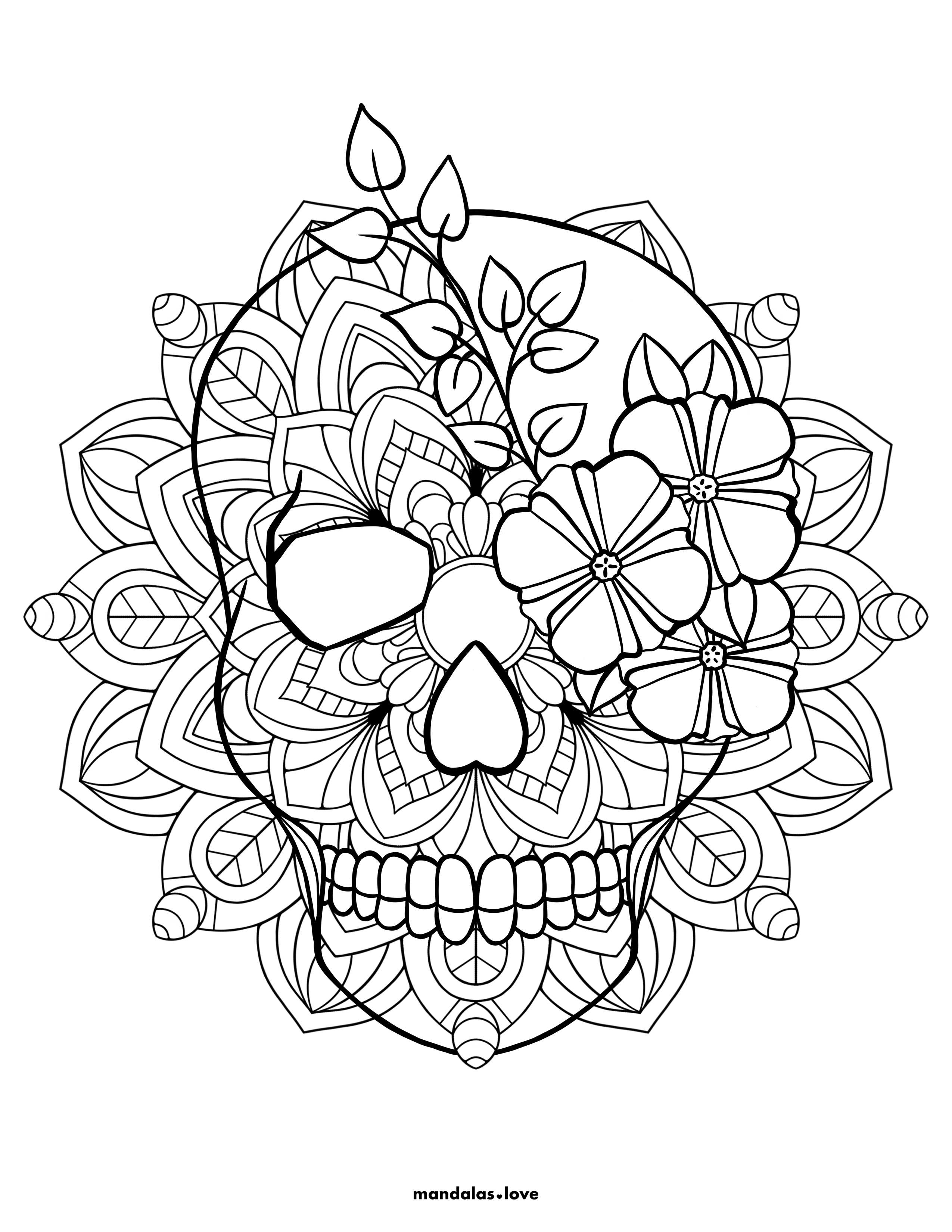 Mexican Sugar Skull Mandala Coloring Page