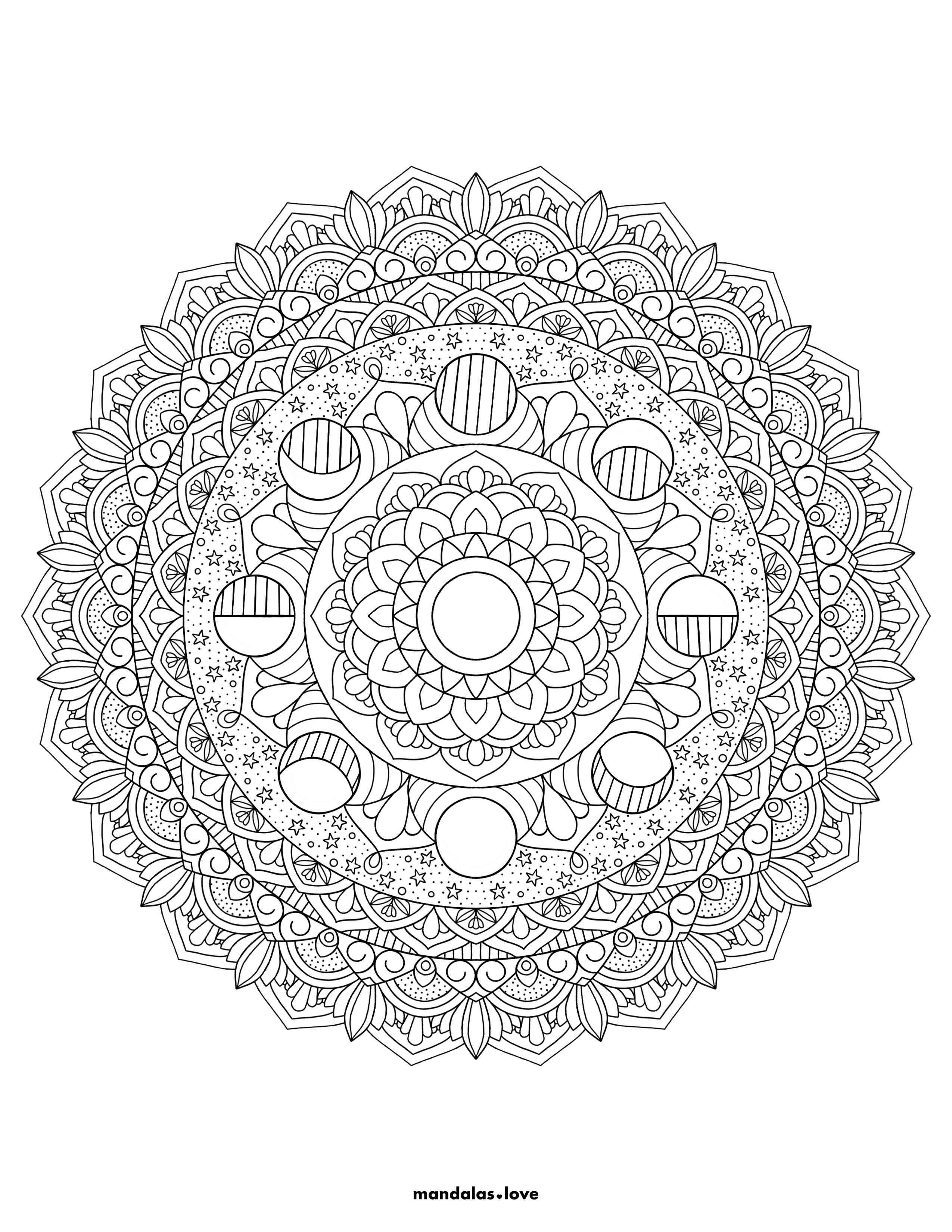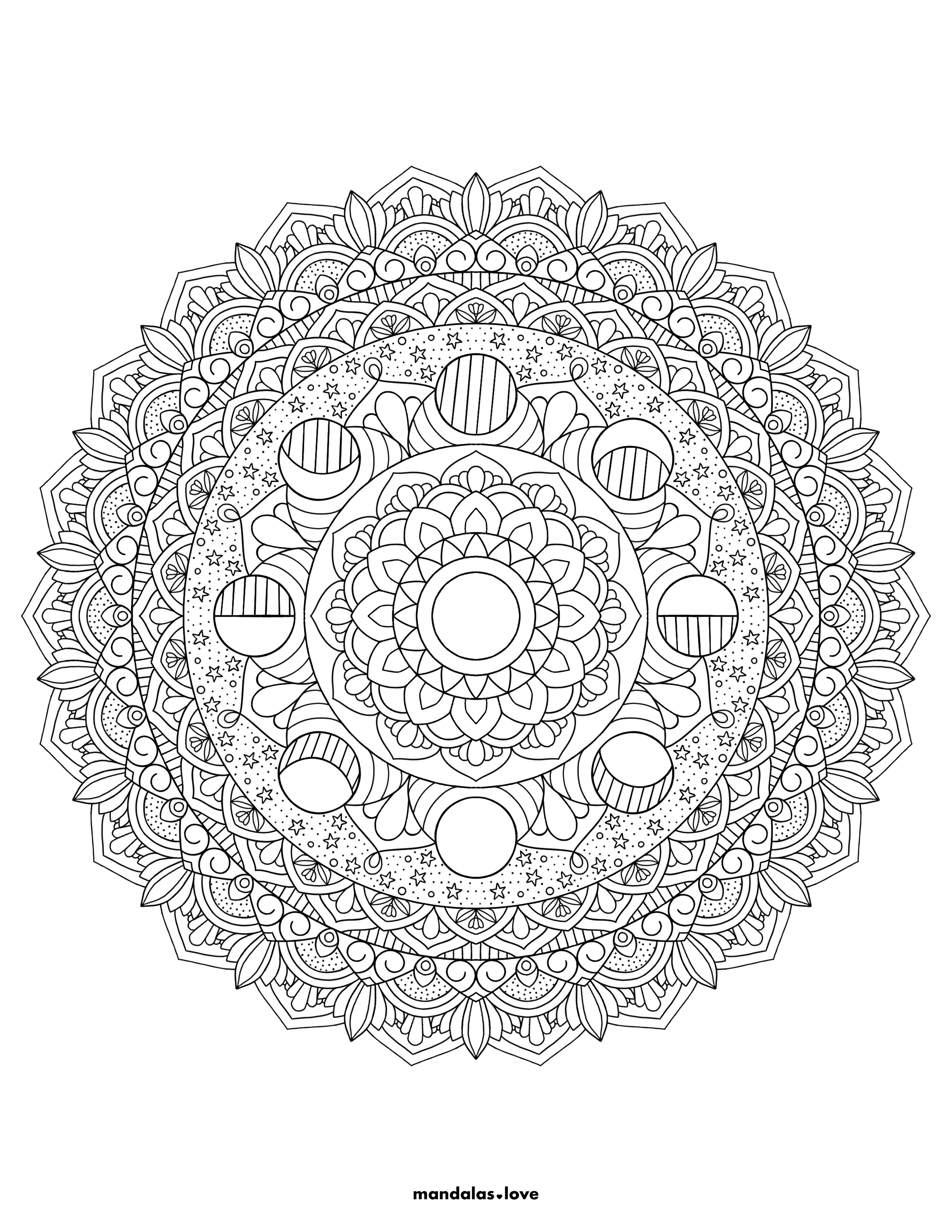 Moon Phase Mandala Coloring Page