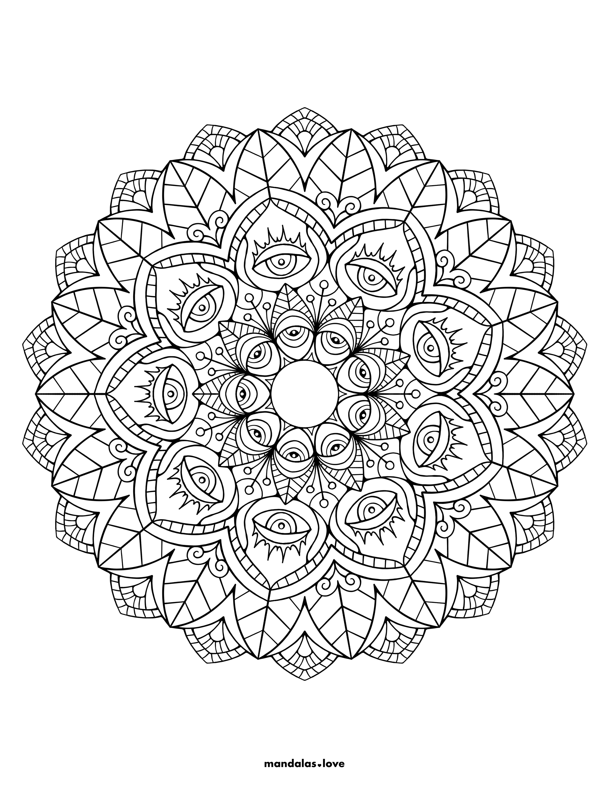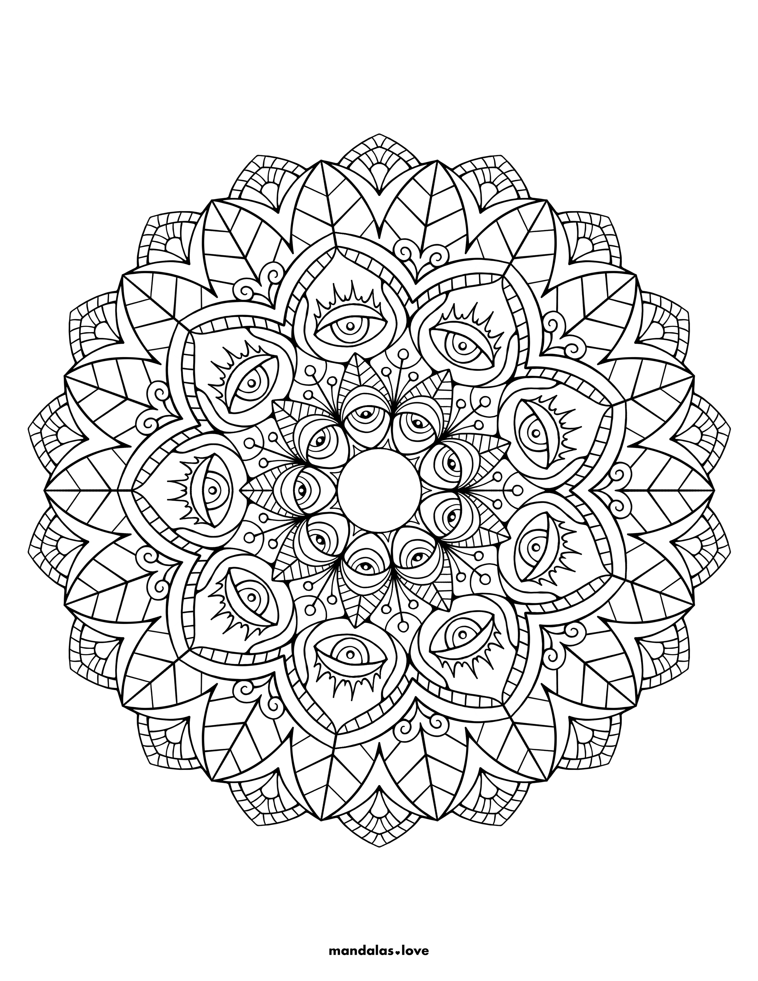 Embark on a mystical journey with our Mystical Burning Eyes Mandala Coloring Page. This unique design combines the enigmatic allure of burning eyes with the natural beauty of leaves, all presented in a bold acid kitsch style. The central eyes, ablaze with flames, draw you into a world of vivid imagination and intense emotions, while the surrounding leaves add a touch of earthy mystique. Perfect for those who love to explore themes of mystery and magic through art, this mandala invites you to dive into a coloring experience that's both challenging and enchanting. As you apply colors, the fiery and floral motifs merge, creating a striking contrast that's sure to captivate and inspire. This coloring page is not just an artistic endeavor—it's a portal to a fantastical realm, inviting you to leave the mundane behind and explore the extraordinary.