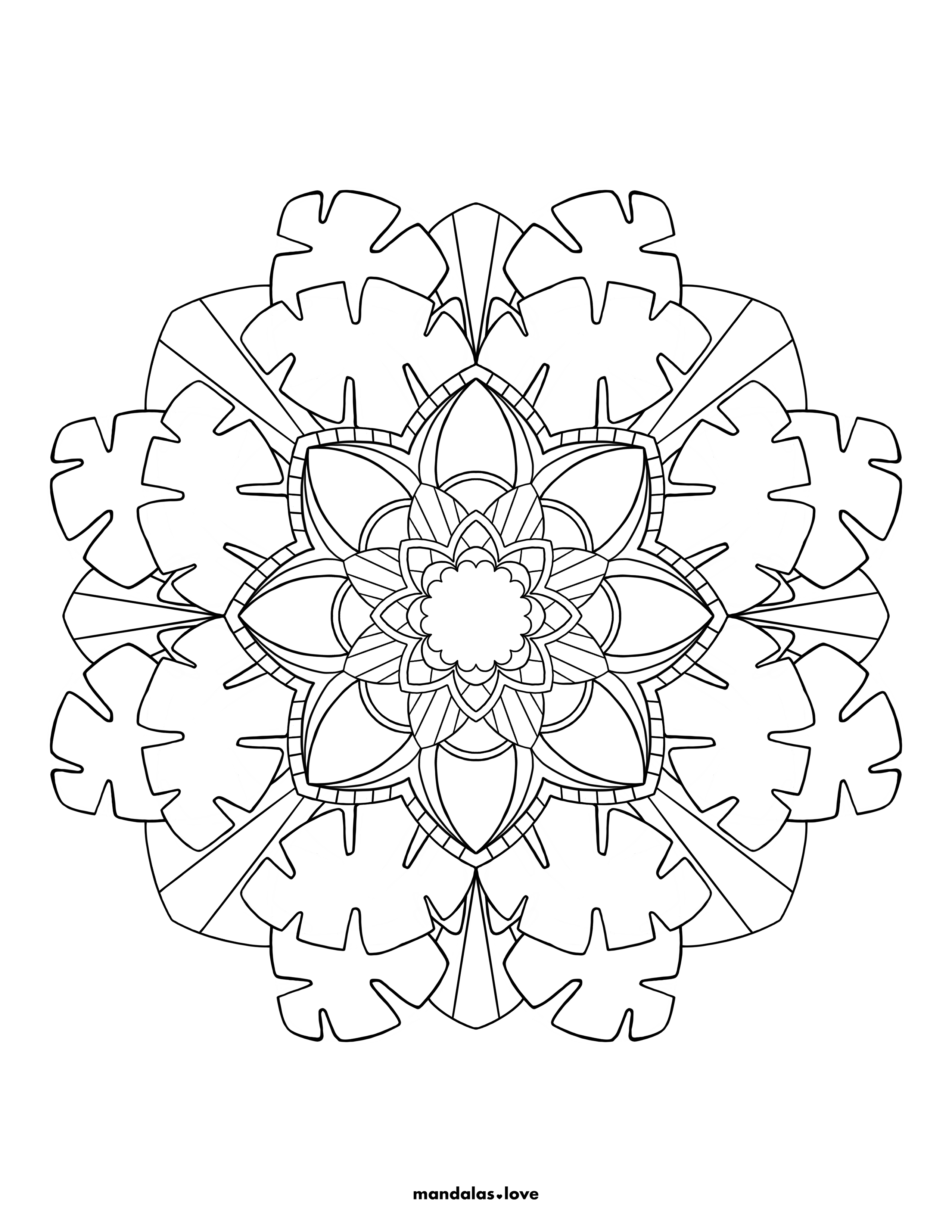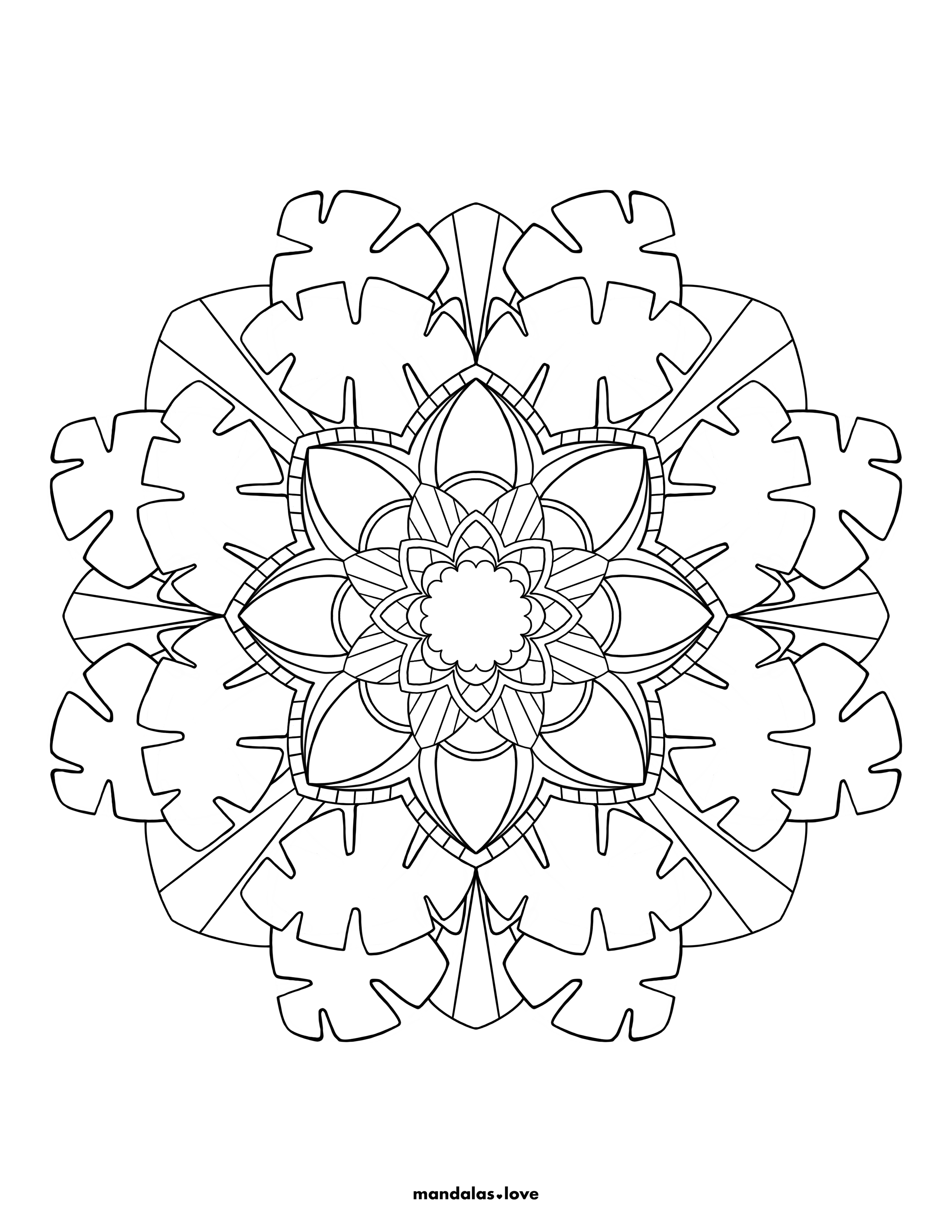 Step into a lush escape with our Round Mandala Coloring Page, intricately designed with tropical leaves that beckon you into nature's embrace. This mandala merges the calming symmetry of round shapes with the exotic allure of tropical foliage, offering a unique coloring experience that promotes relaxation and mindfulness. Each leaf, from the delicate fronds of ferns to the bold outlines of monstera, is a stroke of nature's art waiting to be filled with your creativity. Ideal for those seeking a moment of peace or a creative challenge, this coloring page invites you to bring the vibrant energy of the tropics to life. Whether you're a seasoned artist or finding your creative spark, let this mandala be your guide to a world of color and tranquility.
