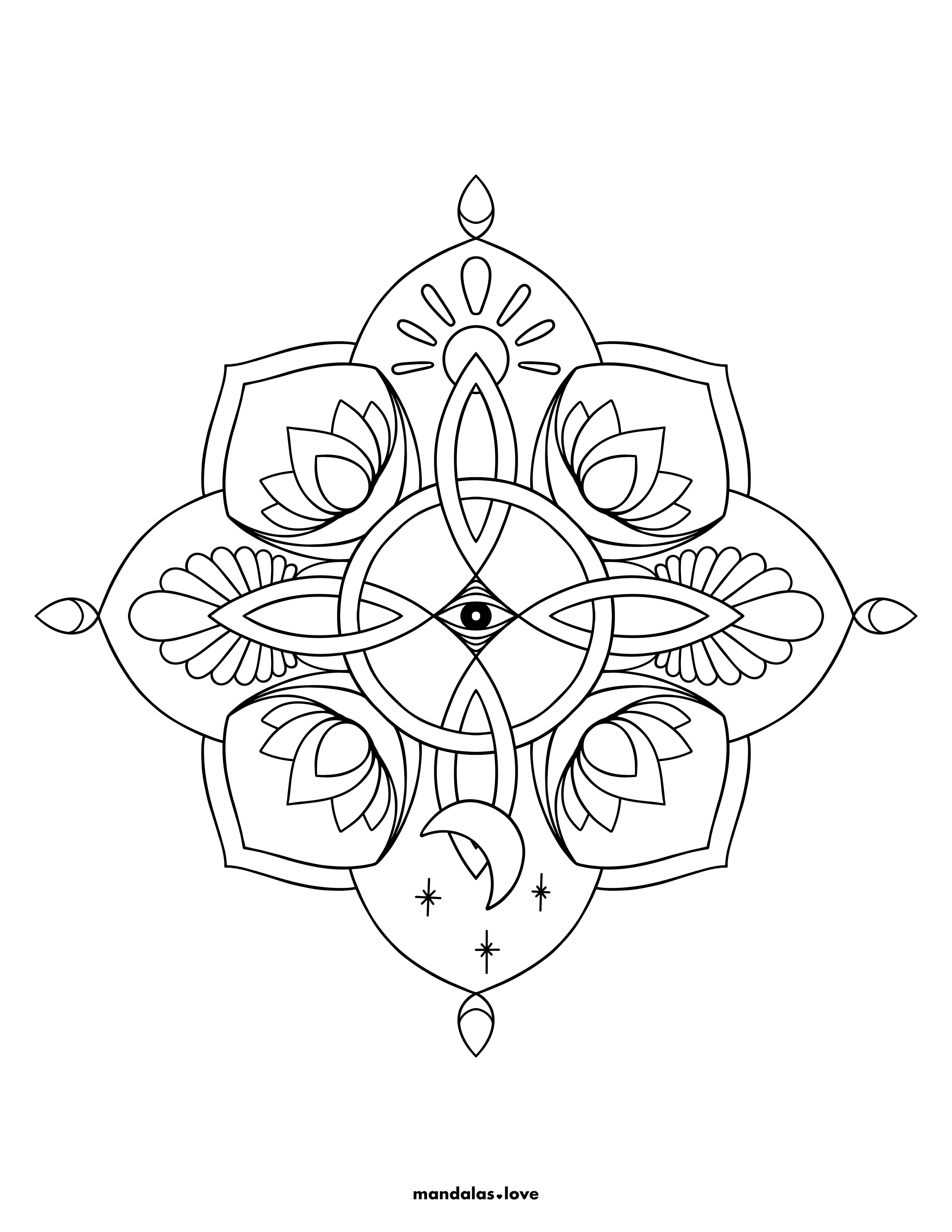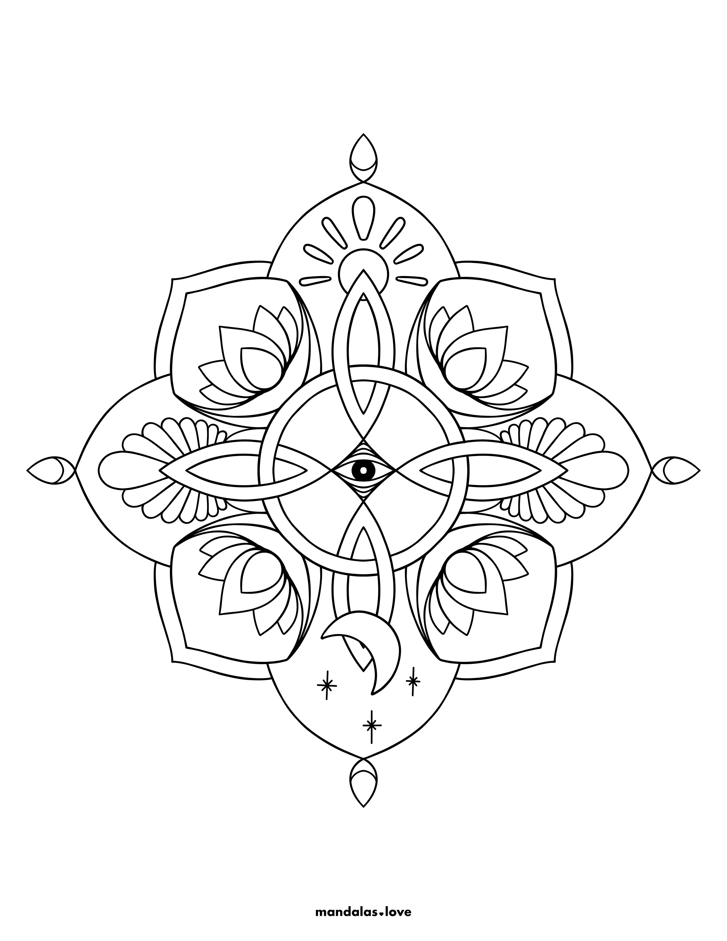 Witch Knot with Lotus and Eye Mandala Coloring Page