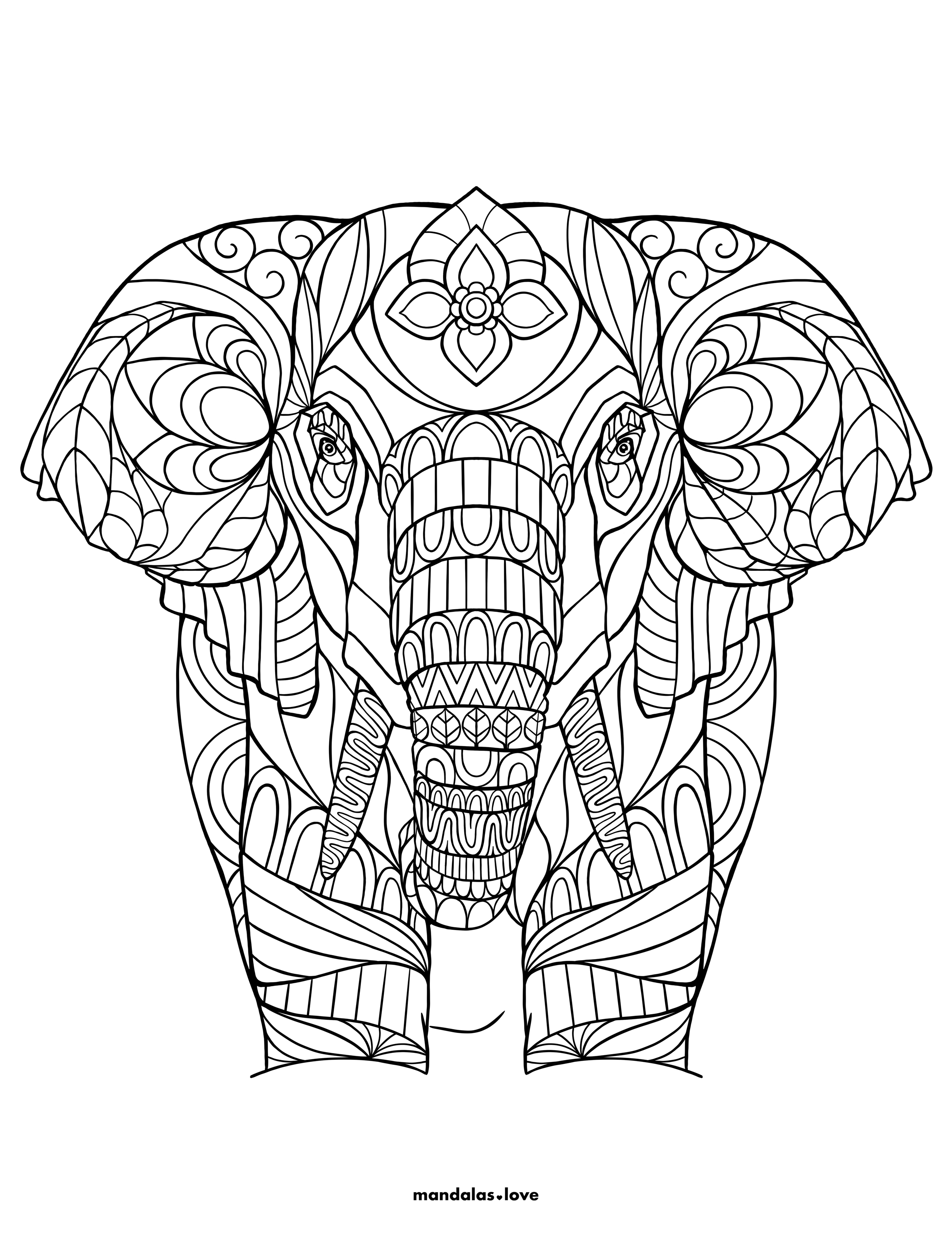 Zentangle Elephant Coloring Page