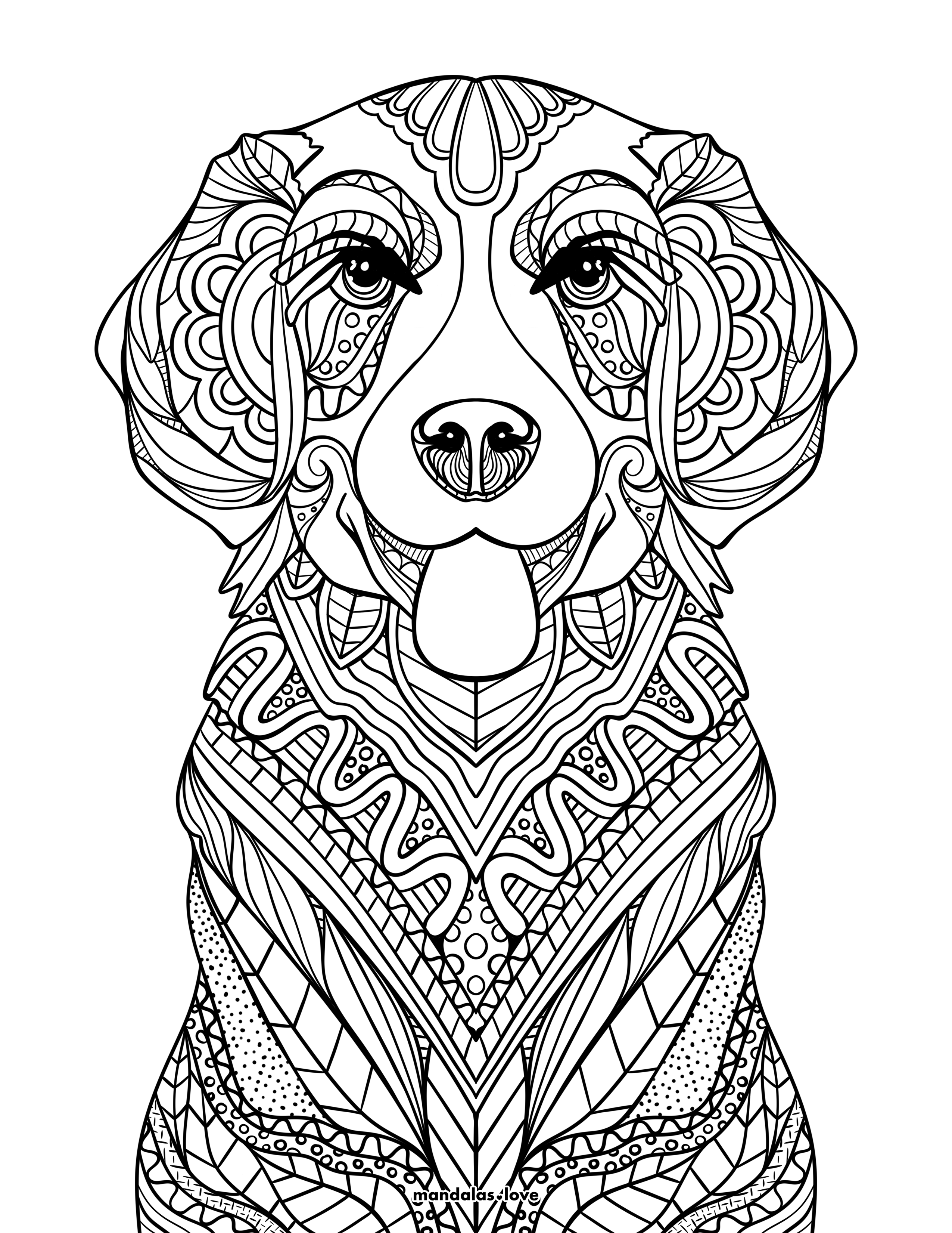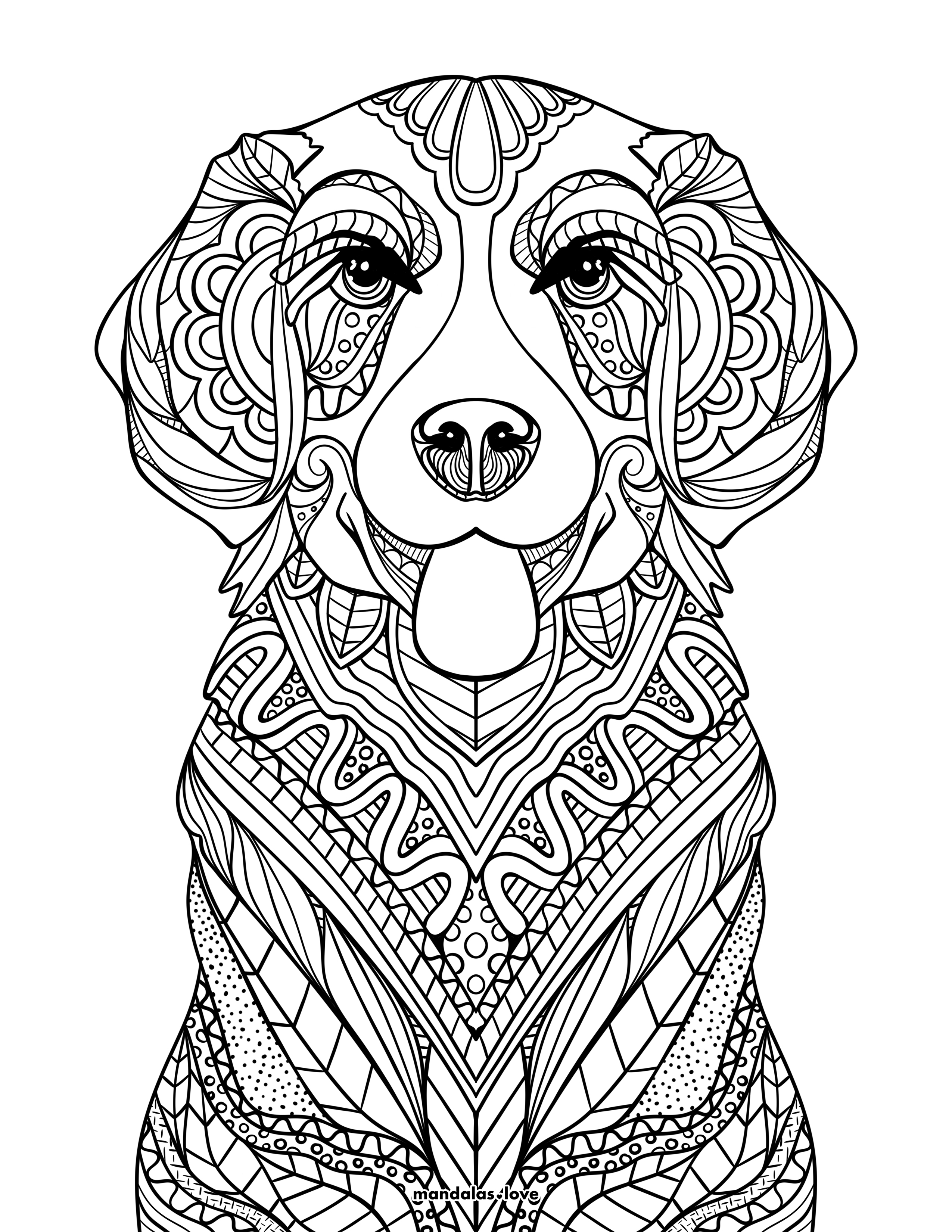 Zentangle Golden Retriever Coloring Page
