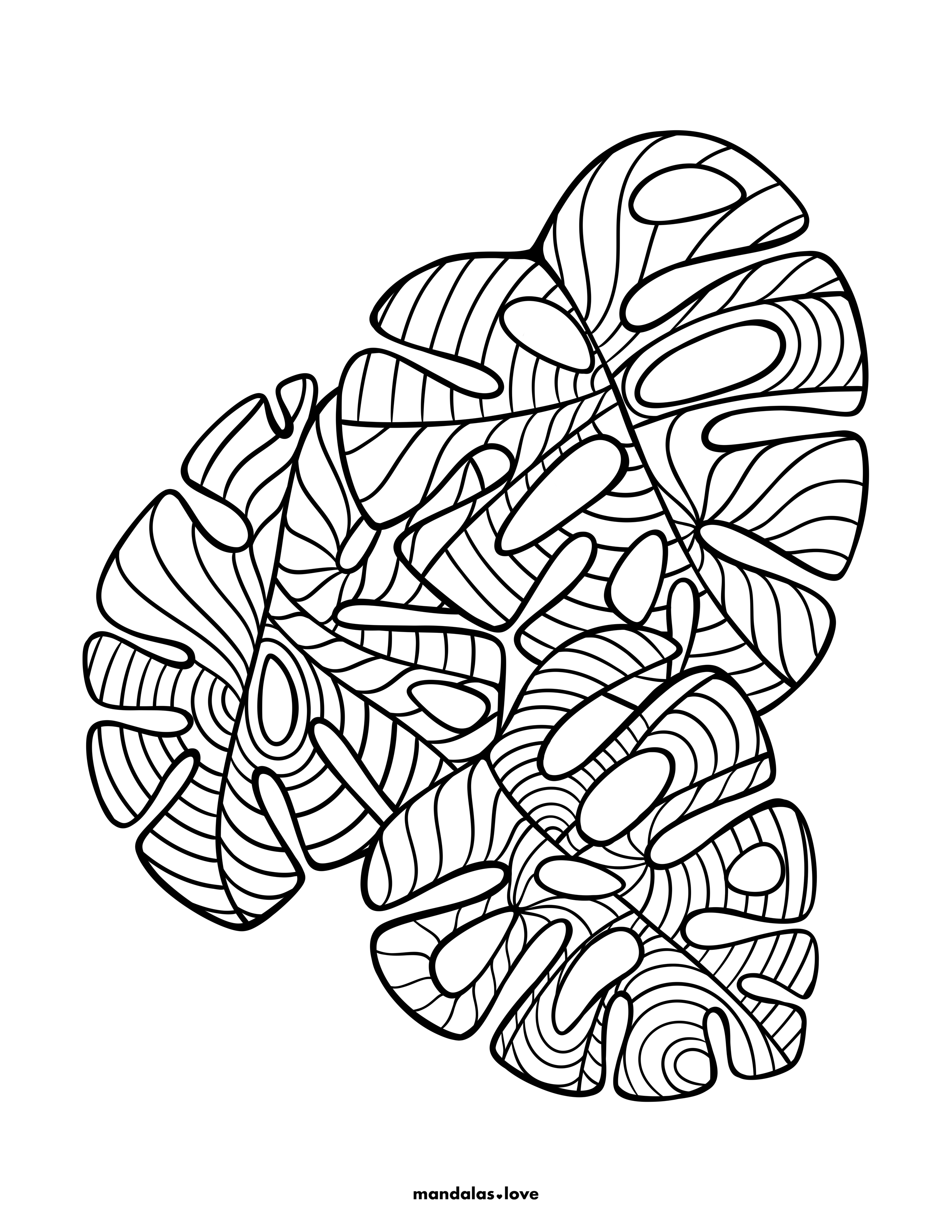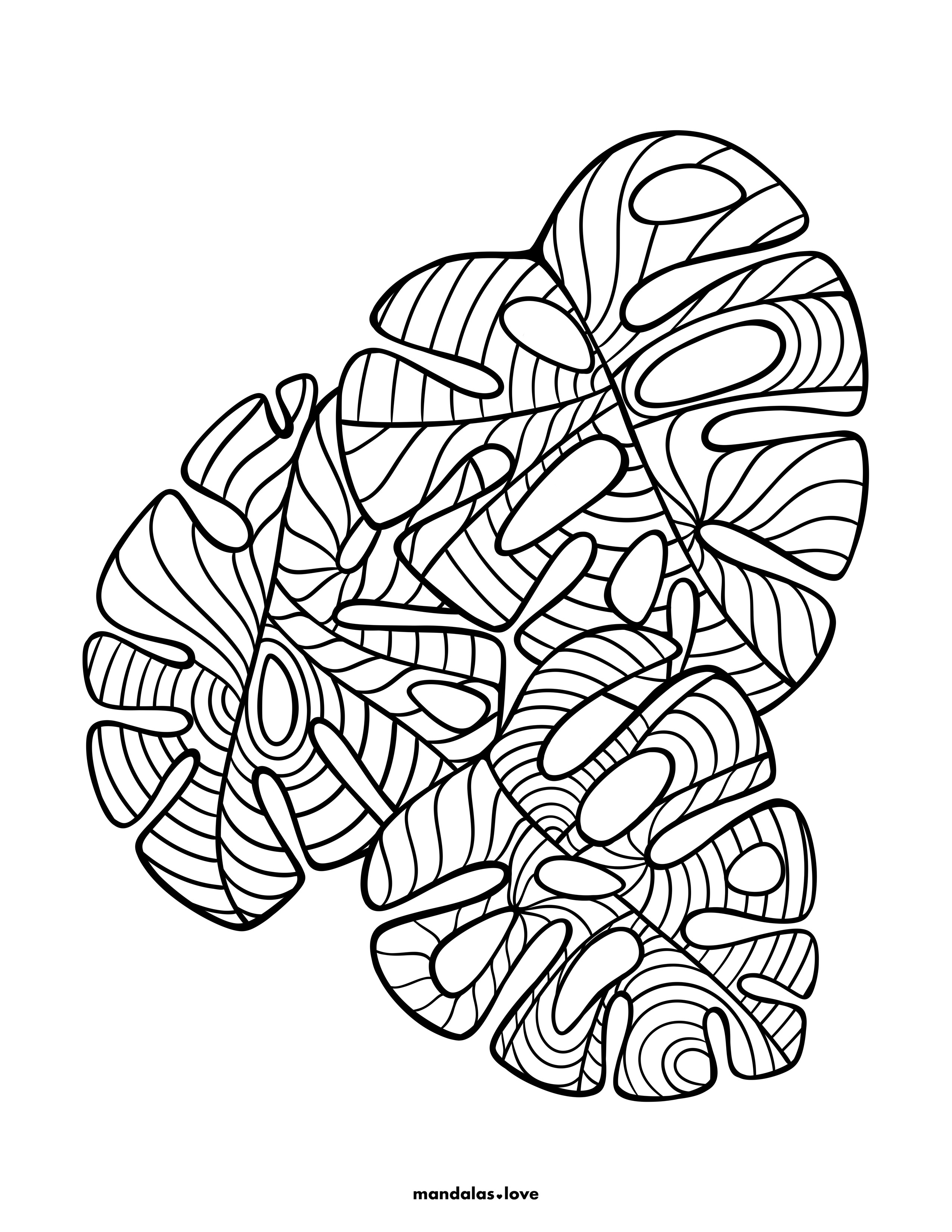 Zentangle Style Tropical Leaves Coloring Page